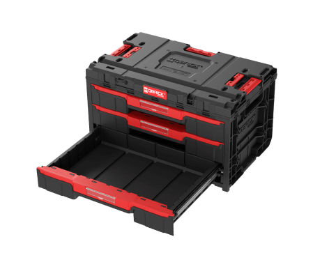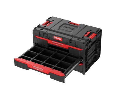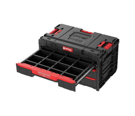 Qbrick System ONE Drawer 3 Toolbox 2.0 to bardzo duża, zaawansowana skrzynka narzędziowa z trzema wysuwanymi szufladami, które poruszają się płynnie po solidnych, aluminiowych prowadnicach. Skrzynia już w standardzie jest wyposażona w aż 45 wyjmowanych przegród (15 w każdej szufladzie), które pozwalają stworzyć maksymalnie zawrotne 48 komór (Od 1 do 16 w każdej szufladzie). Pozwala to na elastyczne dostosowanie przestrzeni ładunkowej w każdej z szuflad według własnych potrzeb.